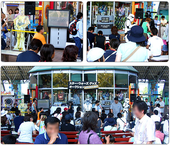 28日の午後1時からは、入場ゲートそばのスペースバザール特設ステージにて、「スター・ウォーズグッズGETキャンペーン」のオークションも行われ、多くのスター・ウォーズファンがイベント展示レア商品に思い思いの値をつけていました。